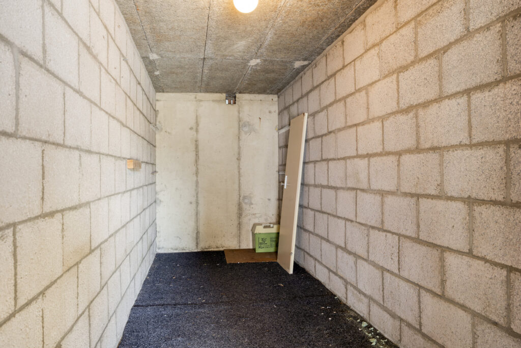 De ruime berging (12 m²) is voorzien van elektra. Er is een praktische eigen overdekte parkeerplaats (13 m²) voorhanden.
