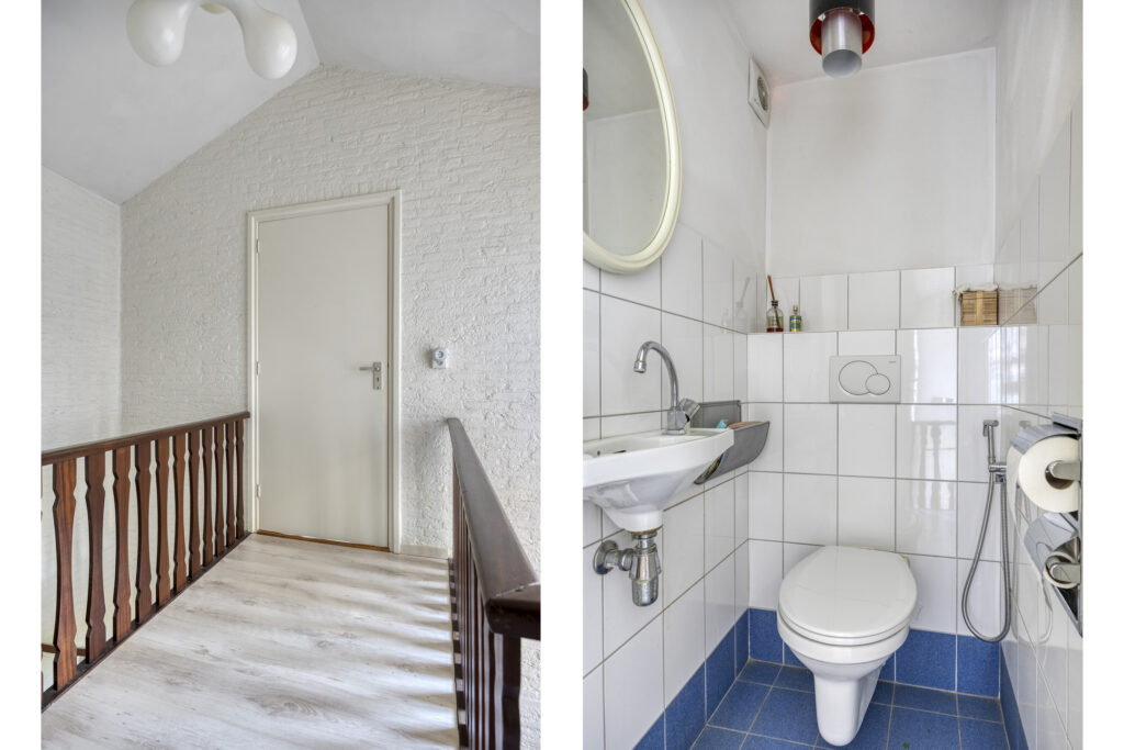 Vanaf de overloop (laminaatvloer) zijn vier slaapkamers, het toilet en de badkamer bereikbaar.