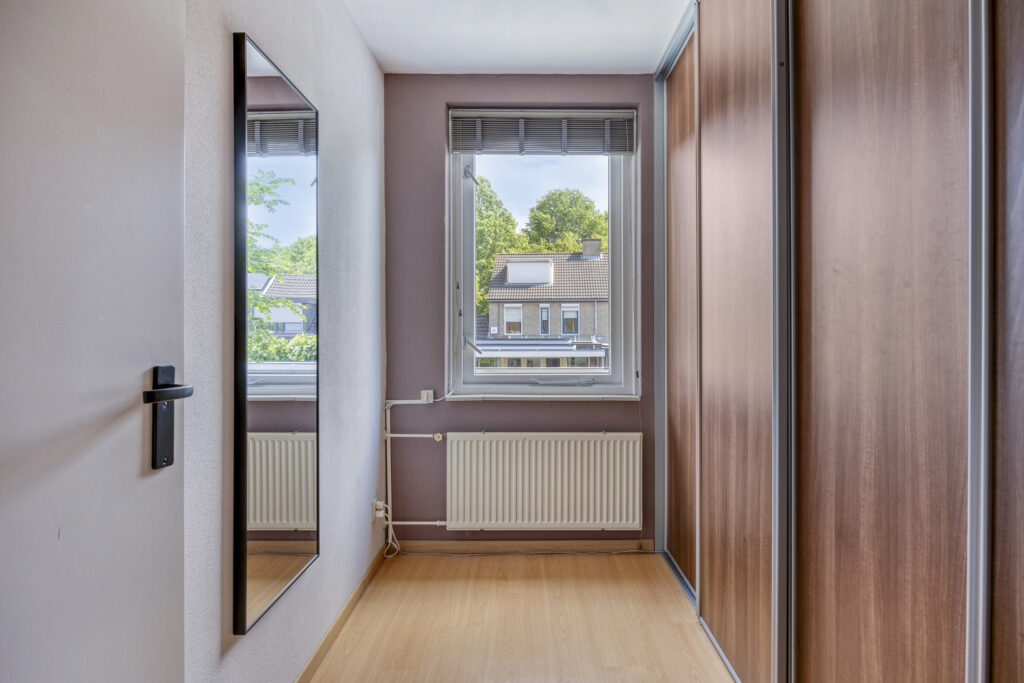 Alle drie de slaapkamers zijn voorzien van een moderne laminaatvloer, strak afgewerkte wanden en plafonds. De twee slaapkamers aan de achterzijde hebben elektrisch bedienbare rolluiken; één kamer beschikt over een praktische schuifkastenwand.