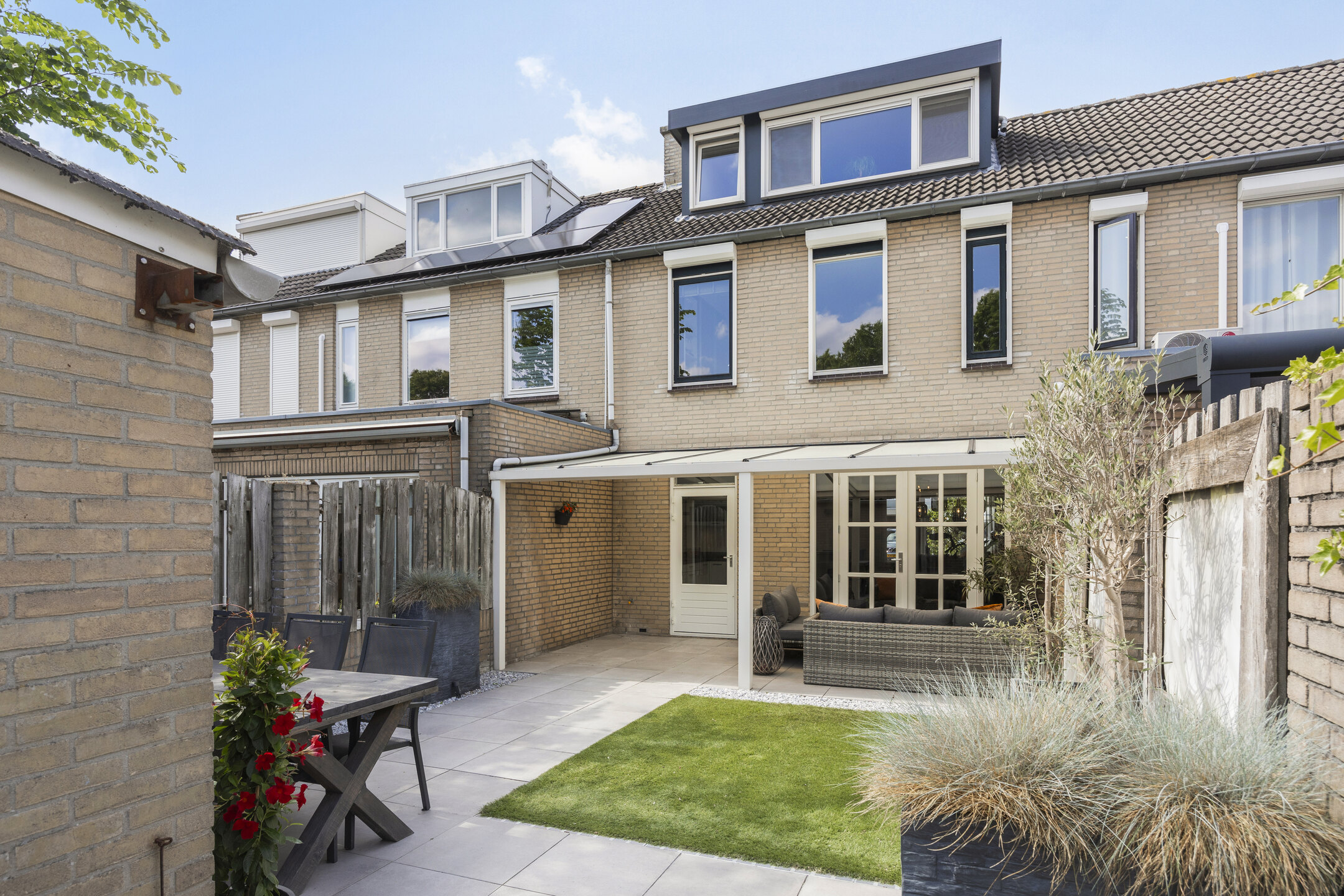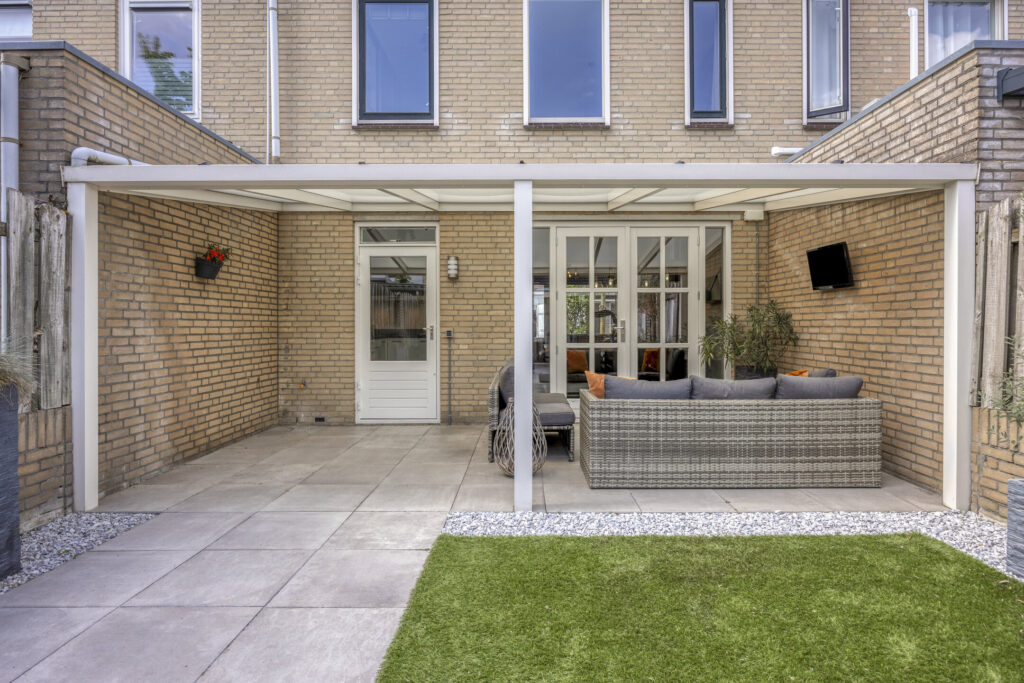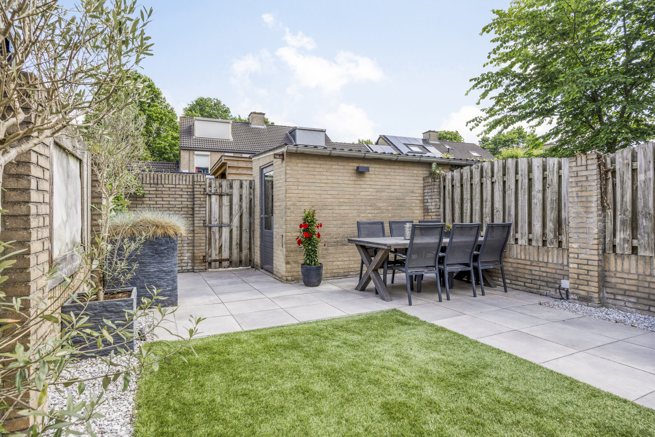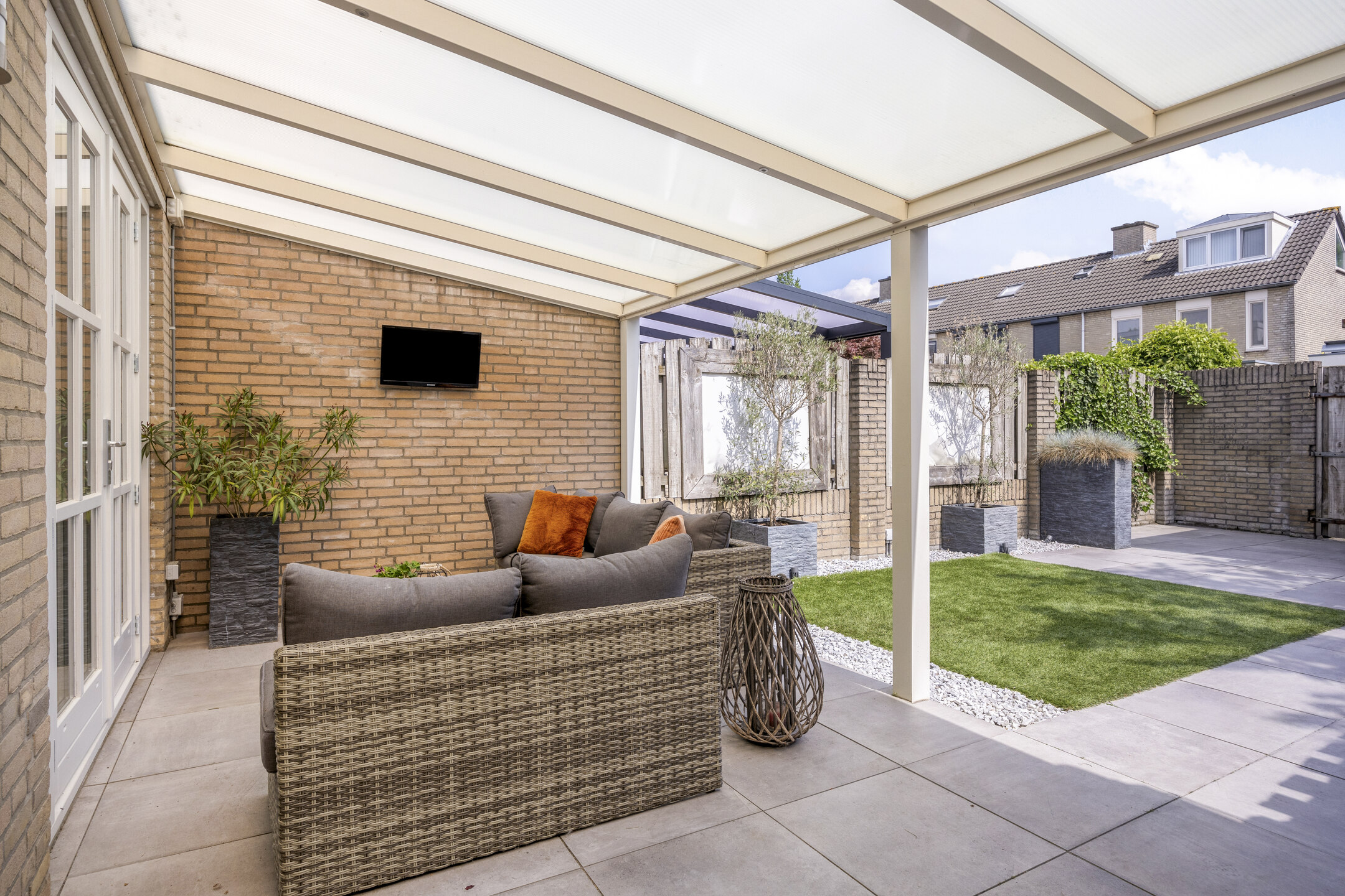 In 2019 is het comfortabele overdekte terras gerealiseerd, bereikbaar vanuit de woonkamer en keuken. De zonnige achtertuin (zuidoosten) is onderhoudsvriendelijk aangelegd met keramische tegels, kunstgras, plantenbakken en een afsluitbare achterom. Achterin bevindt zich een berging met elektra. De voortuin beschikt over een eigen parkeerplaats met sierbestrating.