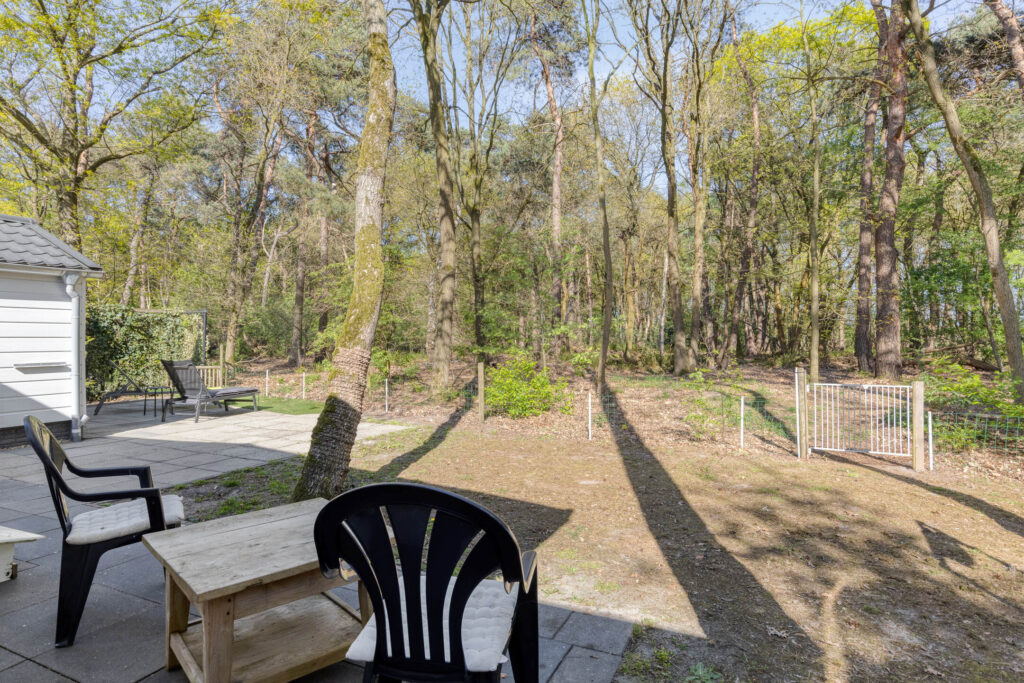 Deze ruime kavel van 772 m² biedt in elke tijd van het jaar en op elke tijd van de dag wel ergens zon én schaduw. De groene oprit versterkt het landelijke karakter. De begroeiing van de tuin is passend bij de grond en de omgeving, en vraagt daarmee beperkt onderhoud. Het ruime terras kent veel privacy en wordt in één hoek begrensd door een glaswand, waardoor u al vanaf het vroege voorjaar beschut voor de wind heerlijk buiten kunt zitten. Tevens biedt het terras een fijne plek voor een borrel in de avondzon.