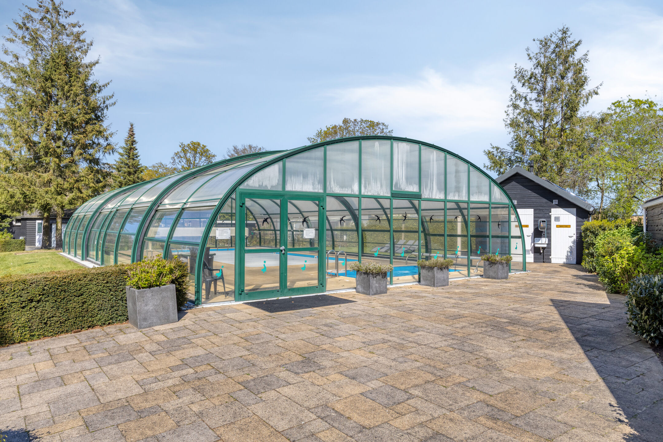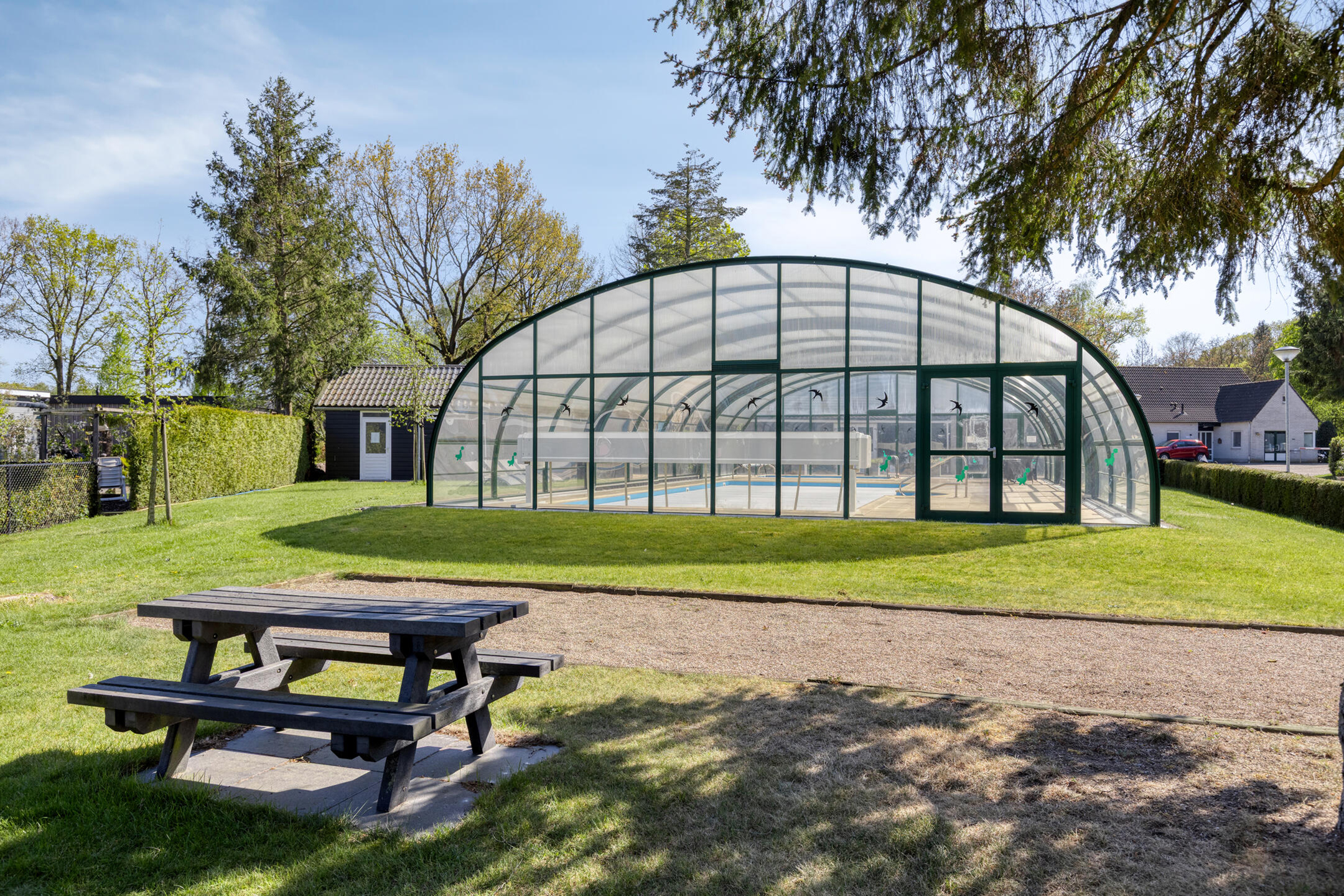 – Het park beschikt over een goed onderhouden luxe verwarmd zwembad met schuifpui, een activiteitenruimte met een terras en speeltoestellen.